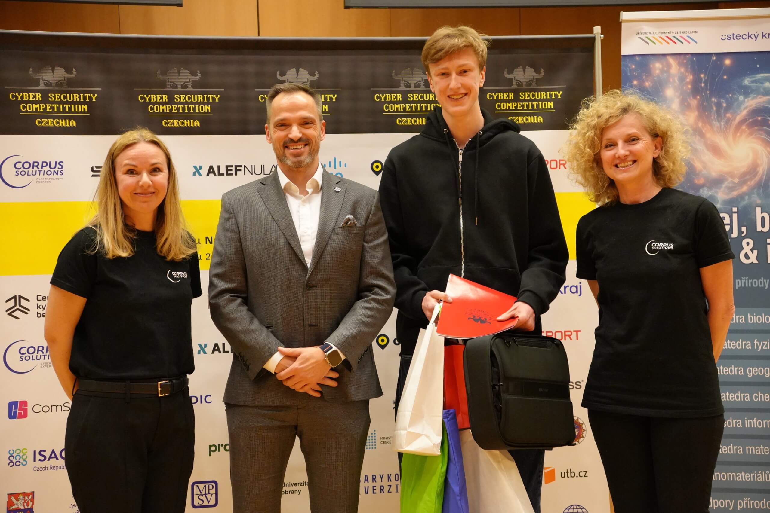 Ve dnech 22. a 23. dubna 2026 se v Ústí nad Labem uskutečnilo celostátní finále 10. ročníku Národní soutěže ČR v kybernetické bezpečnosti. Mezi finalisty byl i náš žák Pavel Knespl ze třídy 2.Bi, který se stal nejlepším středoškolským účastníkem soutěže a celkově v silné konkurenci středoškoláků a vysokoškoláků obsadil celkové 5. místo.